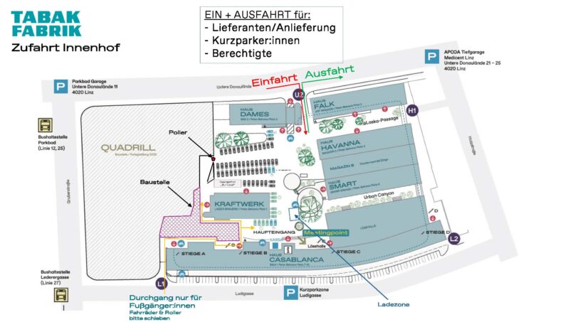 KFZ und LKW bitte über die Untere Donaulände ein- und ausfahren